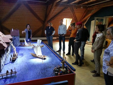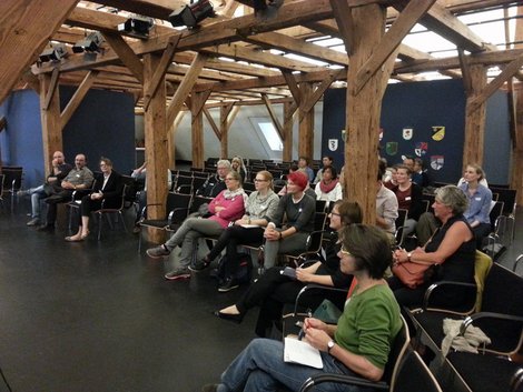 Zunächst stellte Regine Weissinger von der Konzilstadt Konstanz die Bildungsaktivitäten der Stadt vor: Über mehrere Jahre hinweg wurden Unterrichtsmaterialien, Lernkoffer, Materialsammlungen, Apps, Spiele usw. von diversen Partnern entwickelt, die nun in Schulen, Kindergärten, Museen und Bildungseinrichtungen usw. eingesetzt werden können. Beeindruckend war die Landkarte mit den vernetzten Institutionen und Bildungspartnern bis hin zur Schweiz und Österreich. Als sie schließlich noch die Erfolgsfaktoren aufzählte, die ihre Arbeit ausmachten, waren die Teilnehmer ziemlich sprachlos, denn wer von uns MuseumskollegInnen wünscht sich nicht, über Jahre hinweg fester Ansprechpartner zu sein, der erreichbar und immer ansprechbar, der persönliche Beziehungen aufbaut und pflegt und zuletzt noch finanziell und personell unterstützt wird.