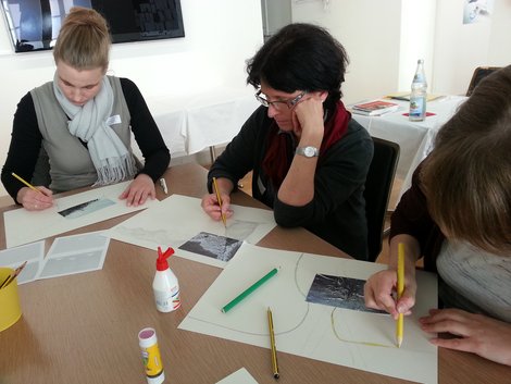 Um Einblicke in die Arbeit der Städtischen Museen Sindelfingen zu erhalten – und sicherlich auch um zu erfahren, ob die Zebrastreifen in Sindelfingen tatsächlich aus Marmor bestehen -, hatten sich 18 TeilnehmerInnen in der Städtischen Galerie eingefunden. Die Begrüßung übernahm Doris Moyrer, Vorsitzende des – neu benannten - Landesverbandes Museumspädagogik Baden-Württemberg e.V.